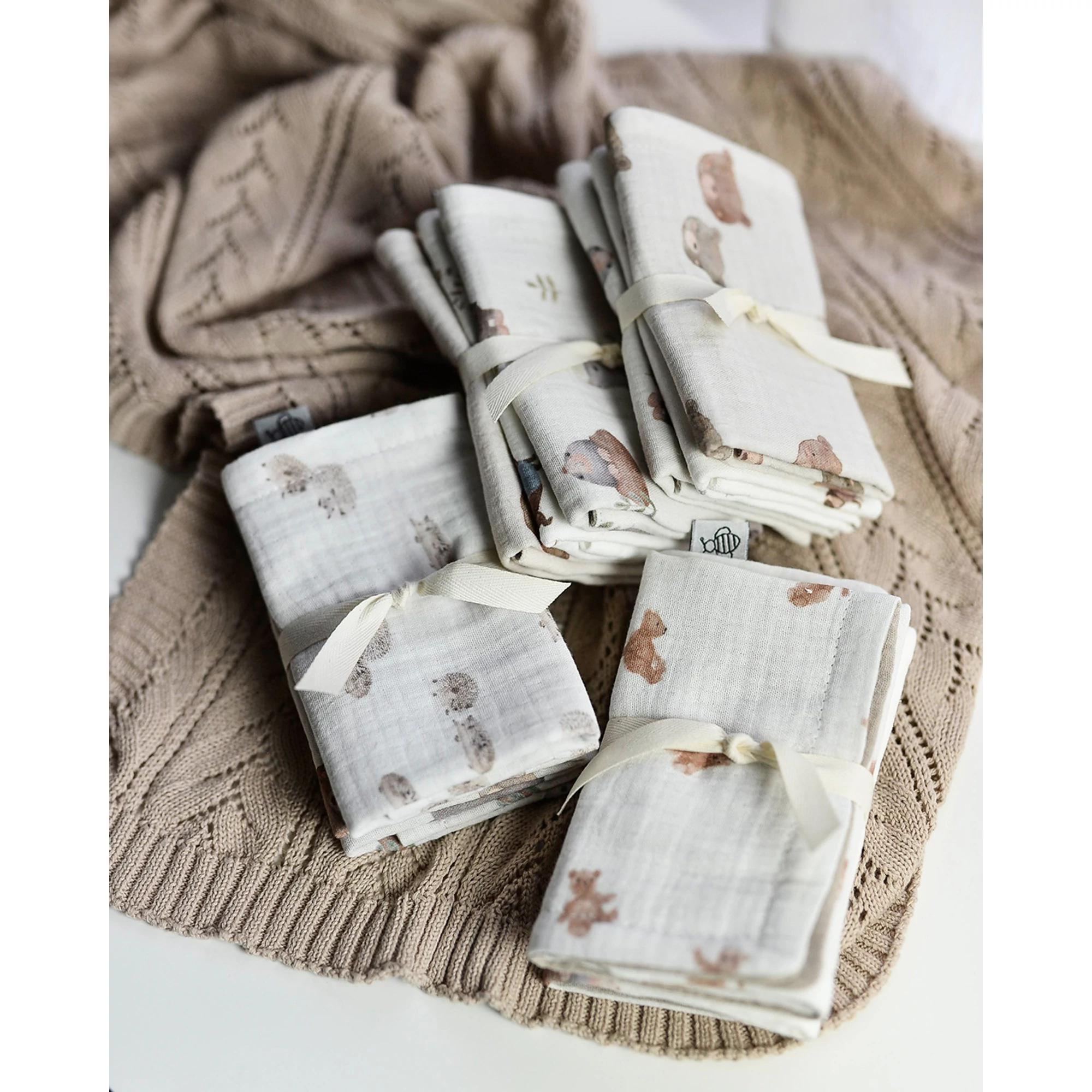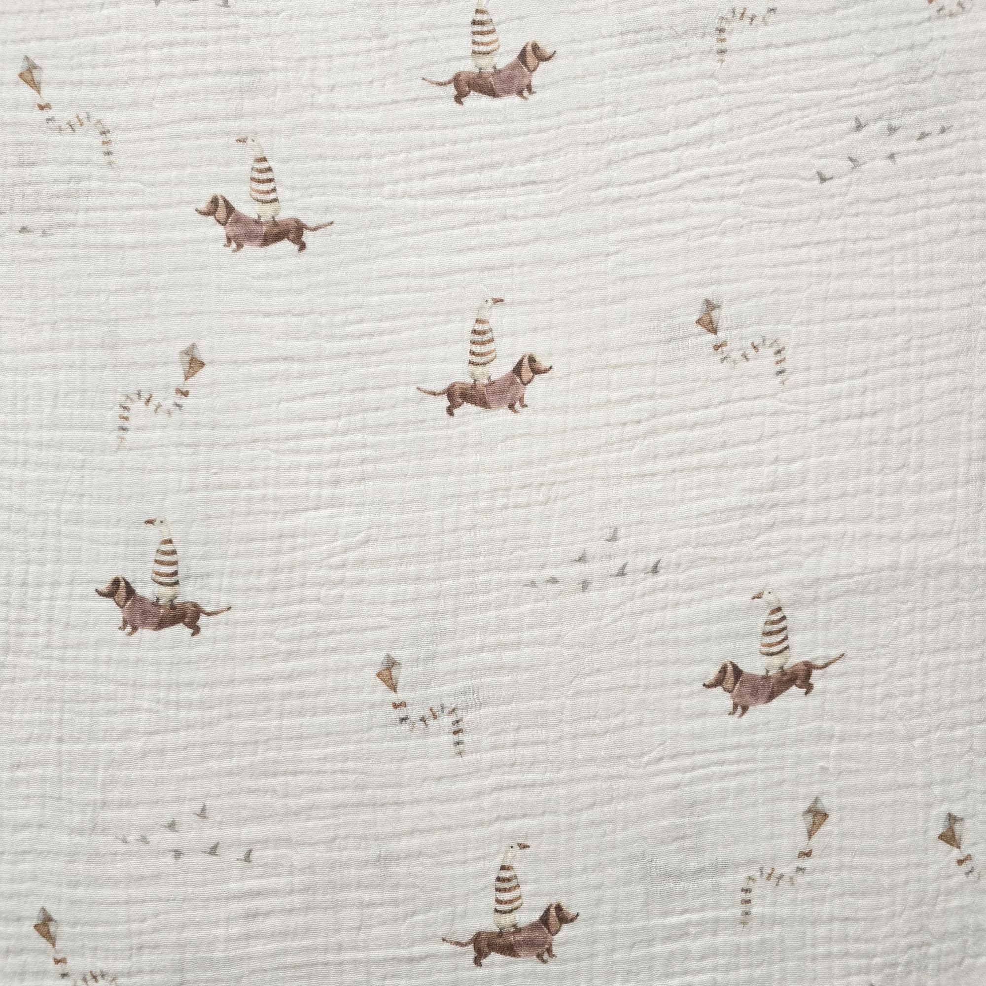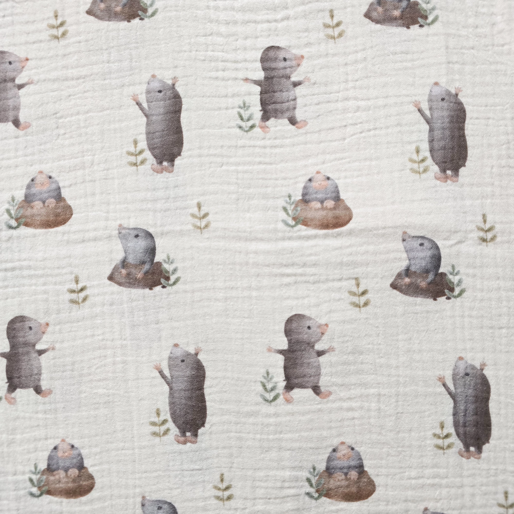 A muszlin pamutszövetet az egyik legtisztább, legegyszerűbb és nagyon finom anyagnak tekintik. Szuper puha és légáteresztő, kiválóan alkalmas újszülöttek, csecsemők és kisgyermekek számára. A muszlin pamut csökkenti a baba túlmelegedésének kockázatát, ügyelve a megfelelő hőmérséklet fenntartására.