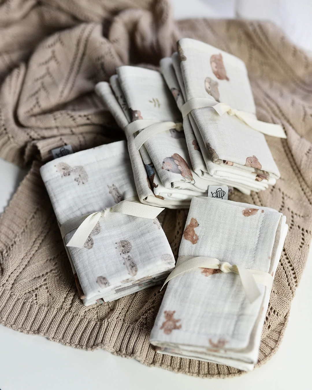 3 darabos muszlin kendő szett Ha szeretnéd, hogy a csomagod konkrét mintákból készüljön, írd meg nekünk a rendelés megjegyzés rovatába, melyeket választod (3 félét). Választható minták: tacskós (mályva) , tacskó (kék), rókás, vakondos, pingvines, sünis, macis, őzikés, medvés